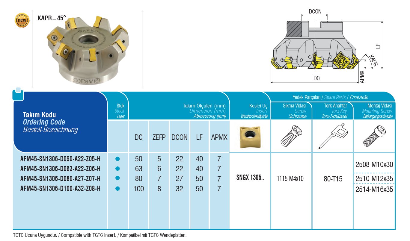 Fréza nástrčná 45° AFM45-SN1306-D050-A22-Z05-H