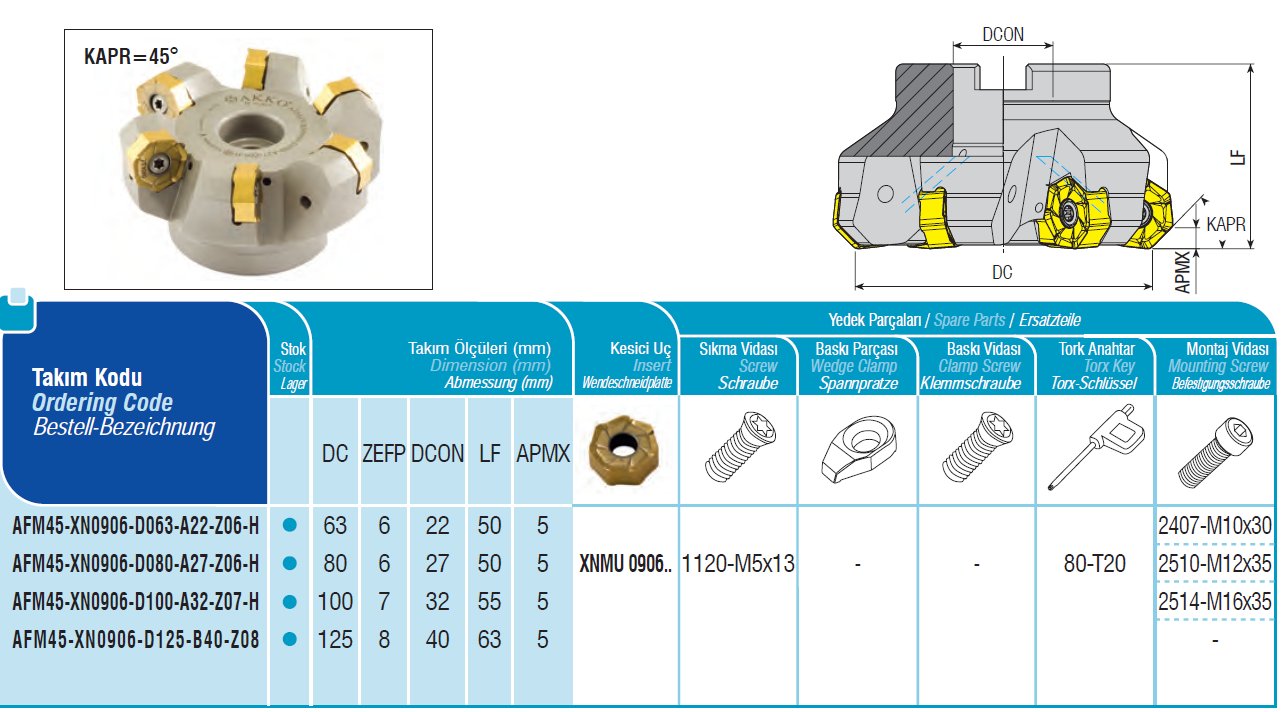 Fréza nástrčná 45° AFM45-XN0906-D100-A32-Z07-H