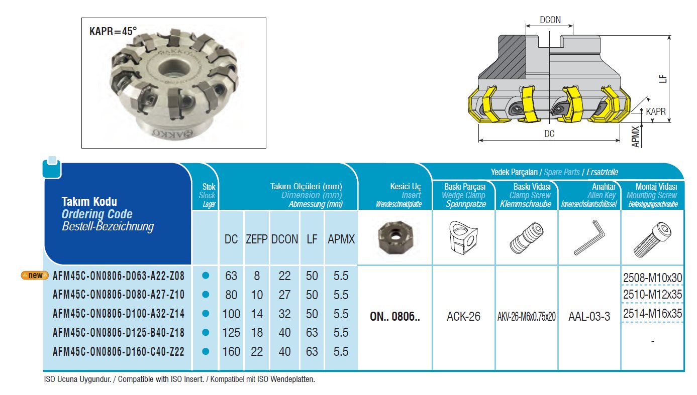Fréza nástrčná 45° AFM45C-ON0806-D100-A32-Z14