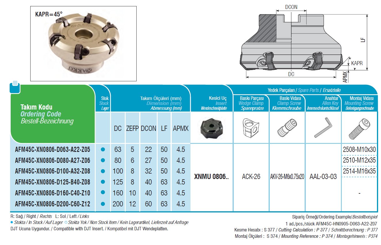 Fréza nástrčná 45° AFM45C-XN0806-D063-A22-Z05