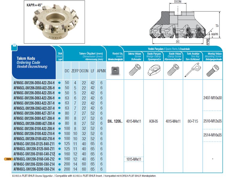 Fréza nástrčná 45° AFM45CL-SN1206-D080-A27-Z08-H ( levé provedení )