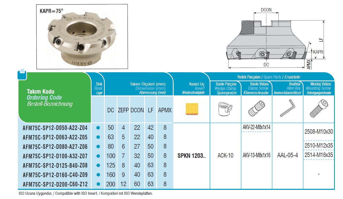 Fréza nástrčná 75° AFM75C-SP12-D100-A32-Z07