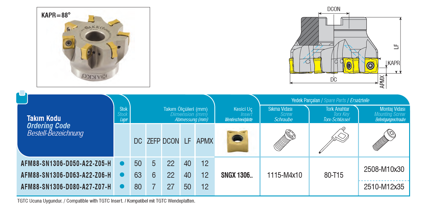 Fréza nástrčná 88° AFM88-SN1306-D063-A22-Z06-H