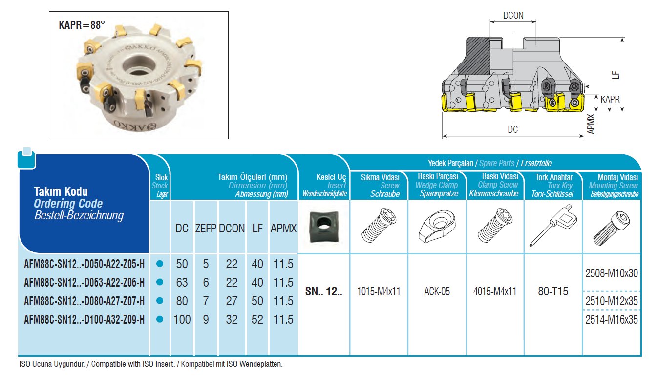 Fréza nástrčná 88° AFM88C-SN12..-D050-A22-Z05-H
