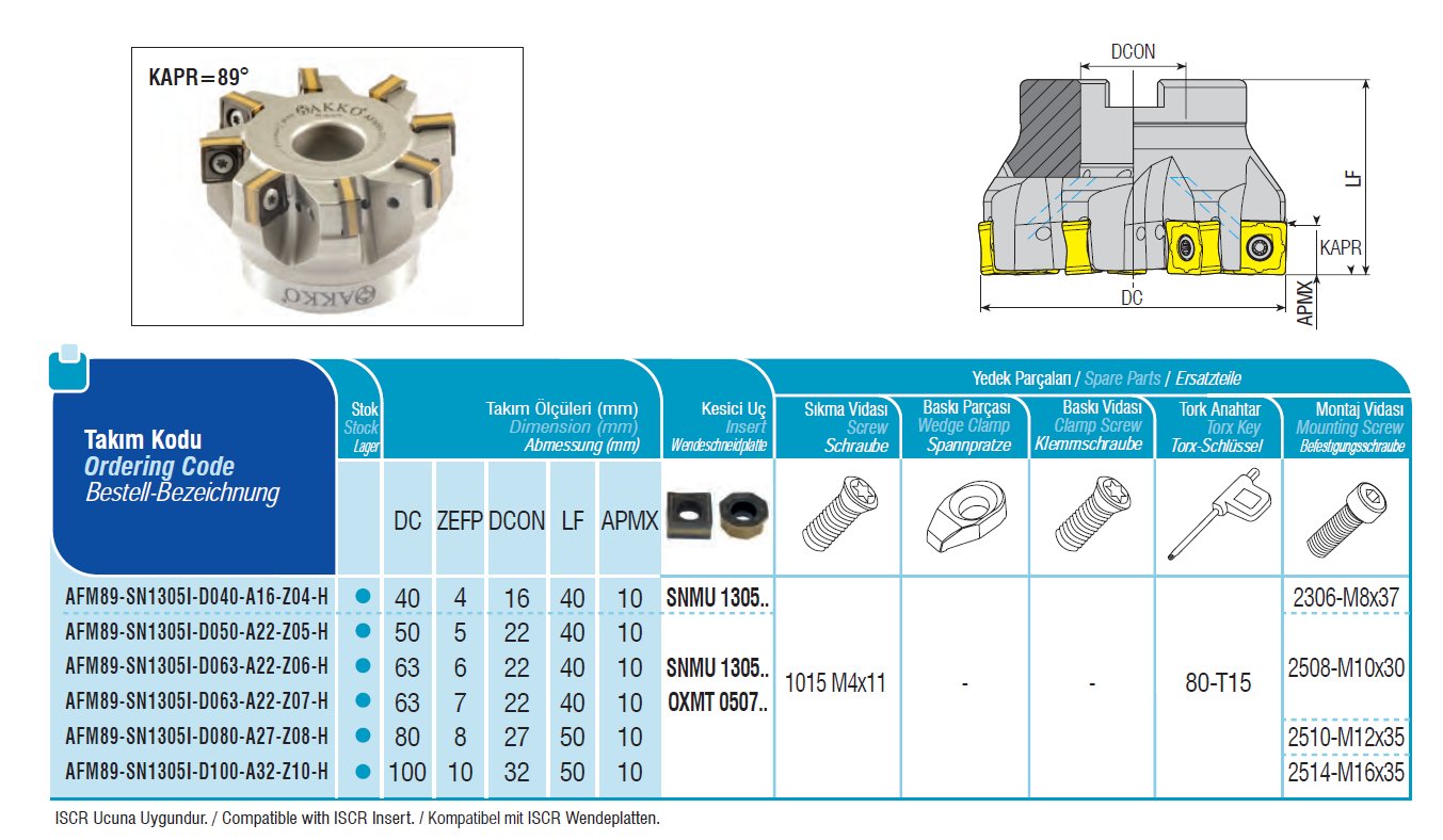 Fréza nástrčná 89° AFM89-SN1305I-D100-A32-Z10-H