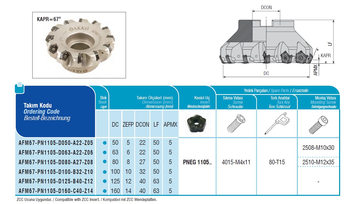 Fréza nástrčná čelní 67° AFM67-PN1105-D160-C40-Z14
