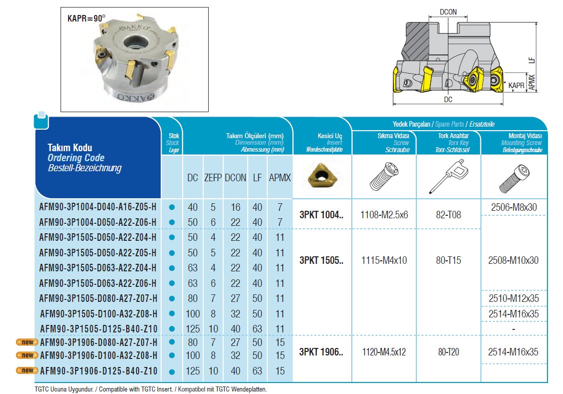 Fréza nástrčná čelní 90° AFM90-3P1505-D080-A27-Z07-H