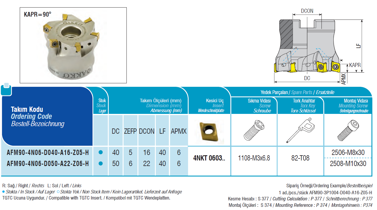 Fréza nástrčná čelní 90° AFM90-4N06-D040-A16-Z05-H