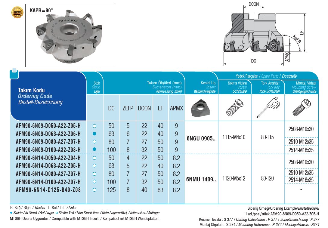 Fréza nástrčná čelní 90°AFM90-6N14-D125-B40-Z08