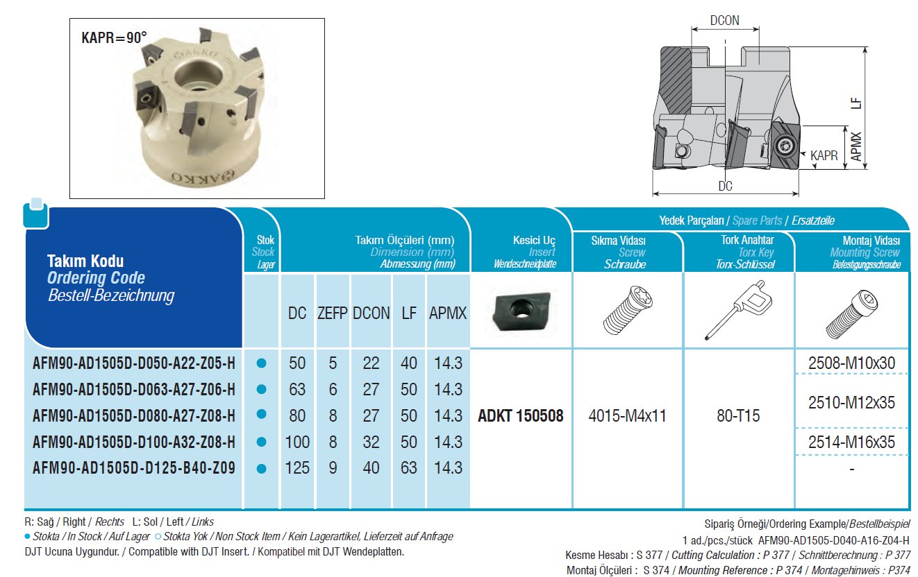 Fréza nástrčná čelní 90° AFM90-AD1505D-D100-A32-Z08-H