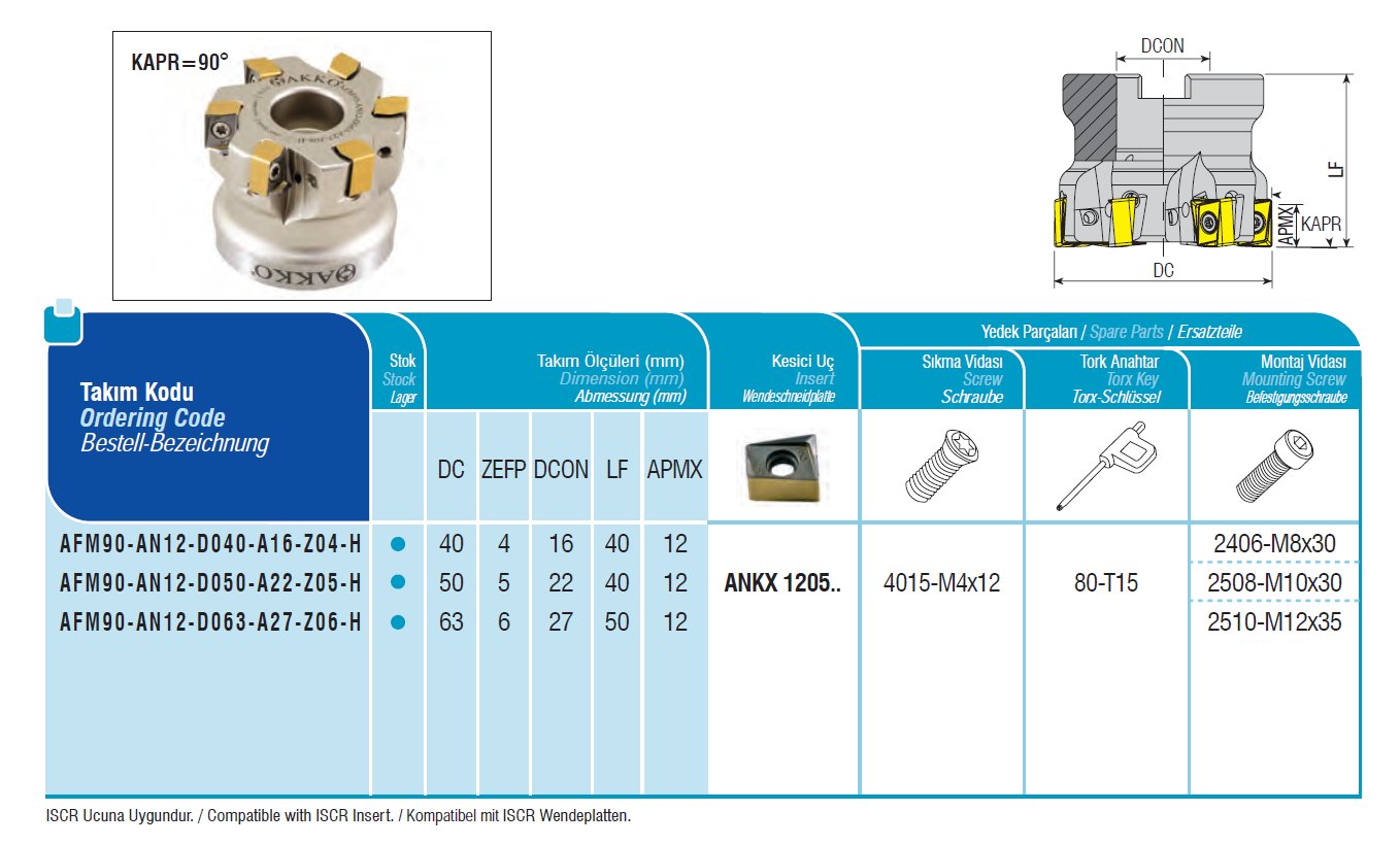 Fréza nástrčná čelní 90° AFM90-AN12-D040-A16-Z04-H
