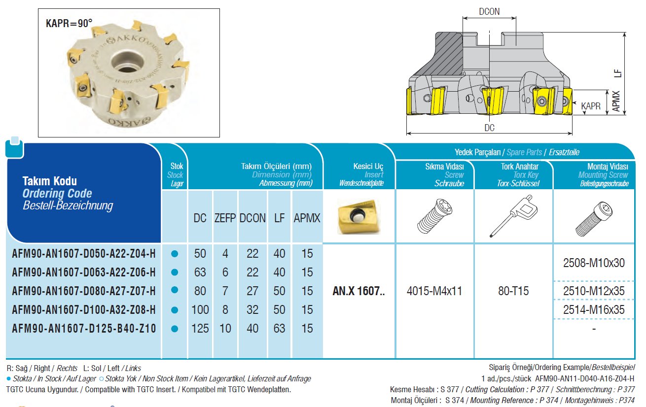 Fréza nástrčná čelní 90° AFM90-AN1607-D080-A27-Z07-H