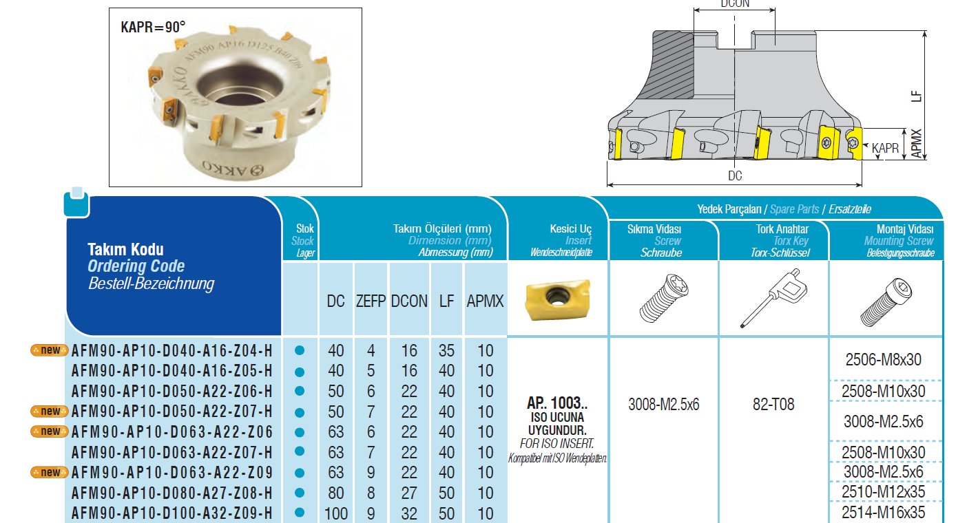 Fréza nástrčná čelní 90° AFM90-AP10-D040-A16-Z04-H