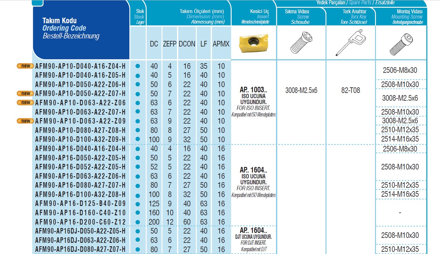 Fréza nástrčná čelní 90° AFM90-AP16-D050-A22-Z05-H