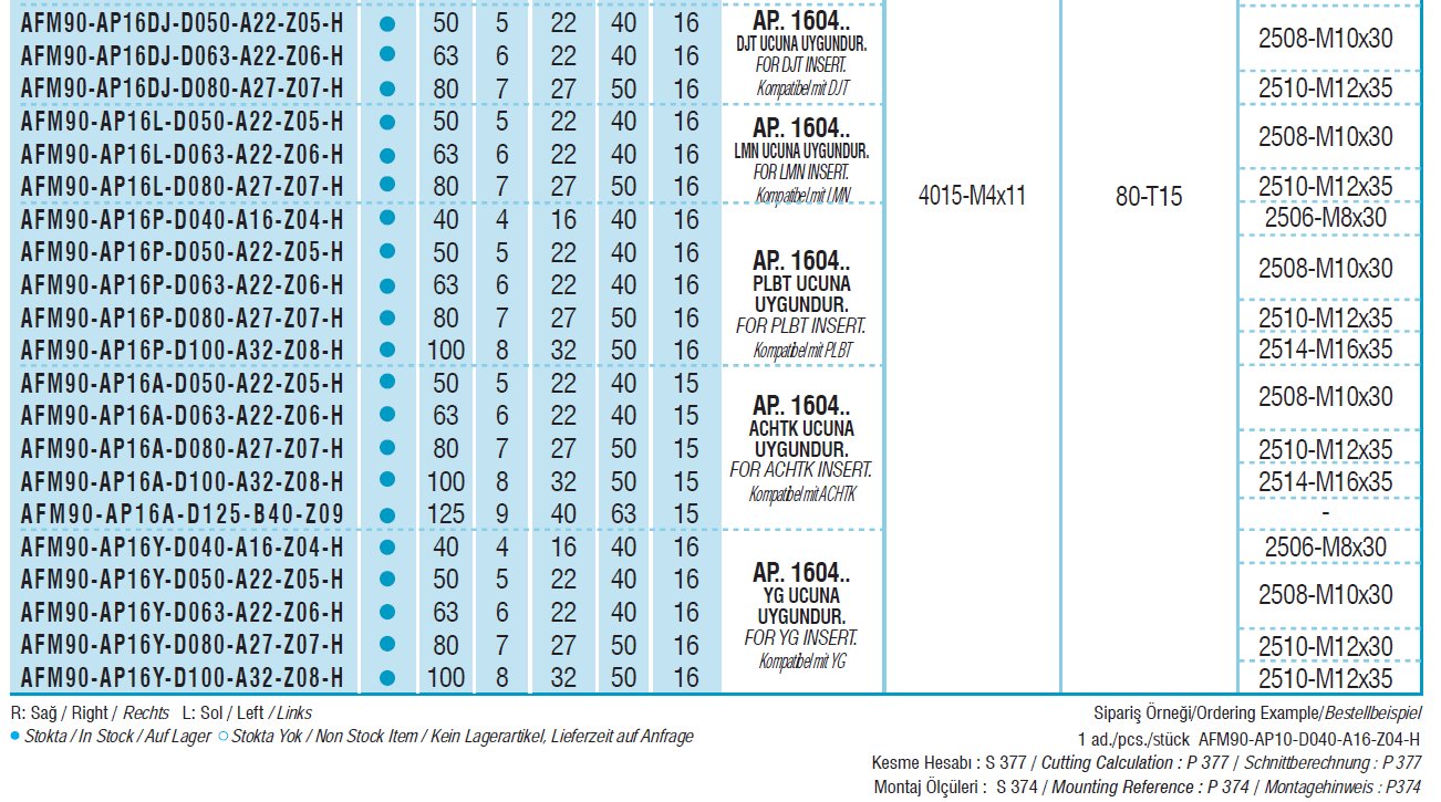 Fréza nástrčná čelní 90° AFM90-AP16P-D063-A22-Z06-H