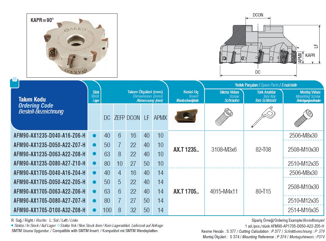 Fréza nástrčná čelní 90° AFM90-AX1705-D100-A32-Z08-H