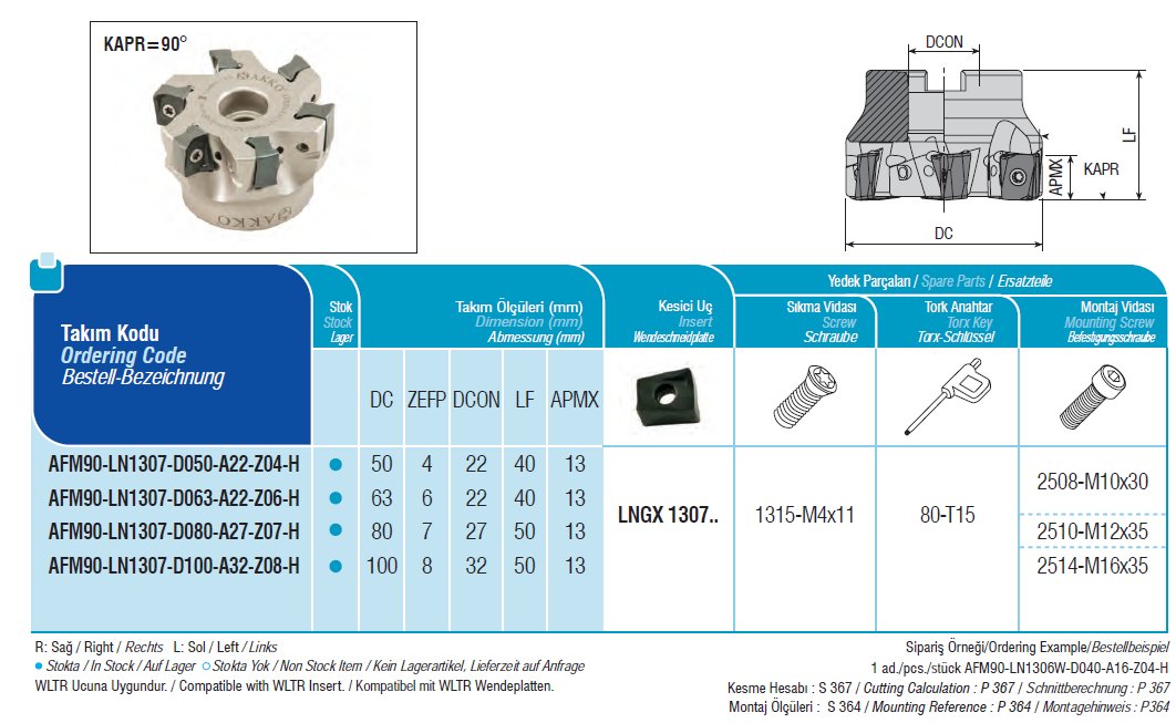 Fréza nástrčná čelní 90° AFM90-LN1307-D063-A22-Z06-H