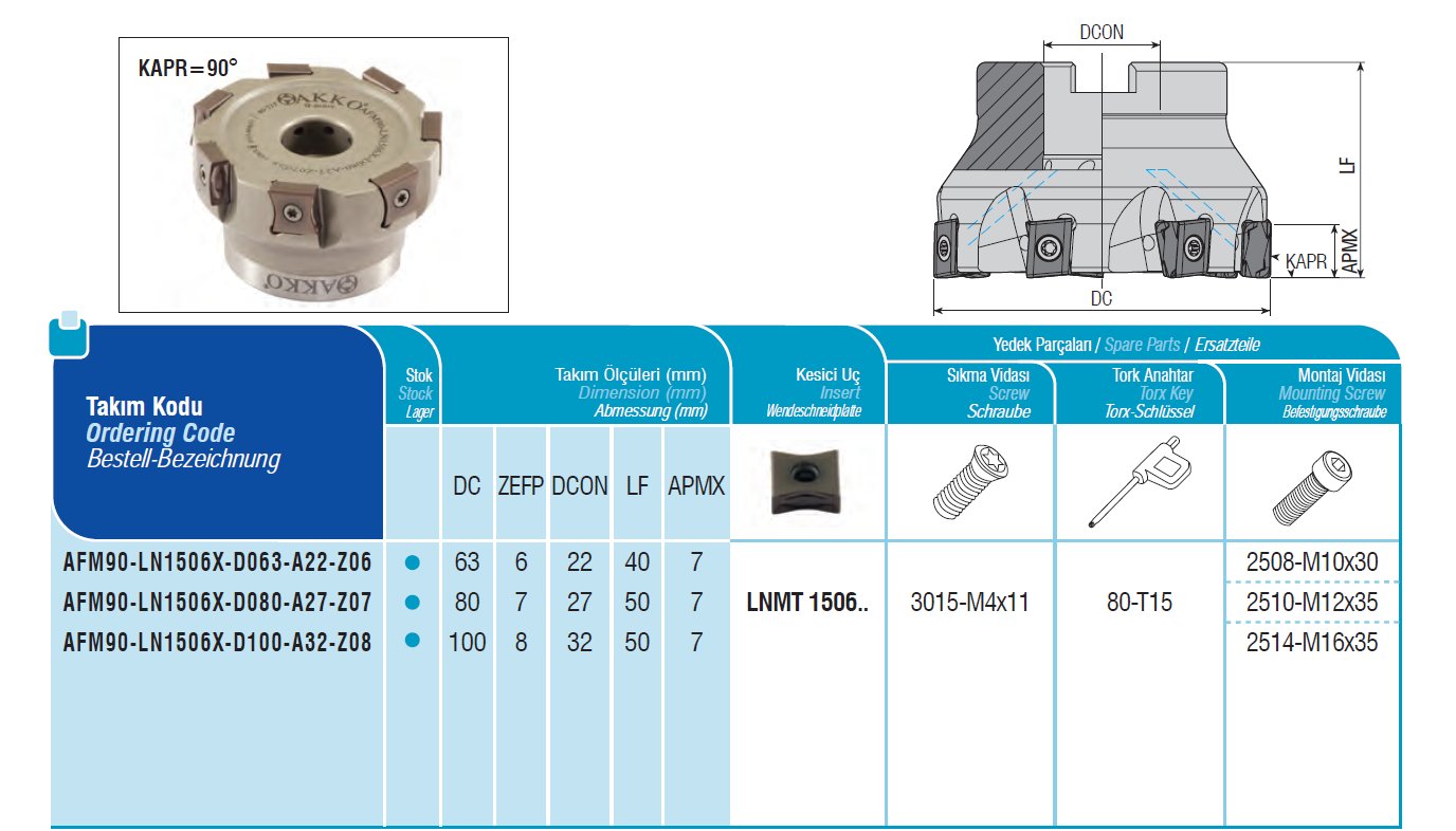 Fréza nástrčná čelní 90° AFM90-LN1506X-D063-A22-Z06