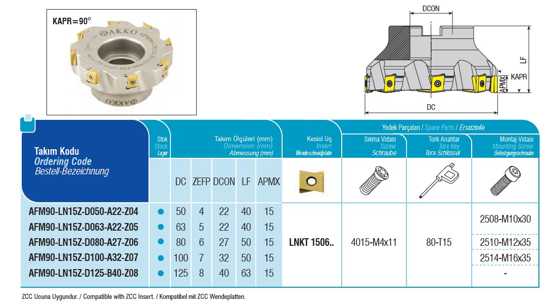 Fréza nástrčná čelní 90° AFM90-LN15Z-D080-A27-Z06