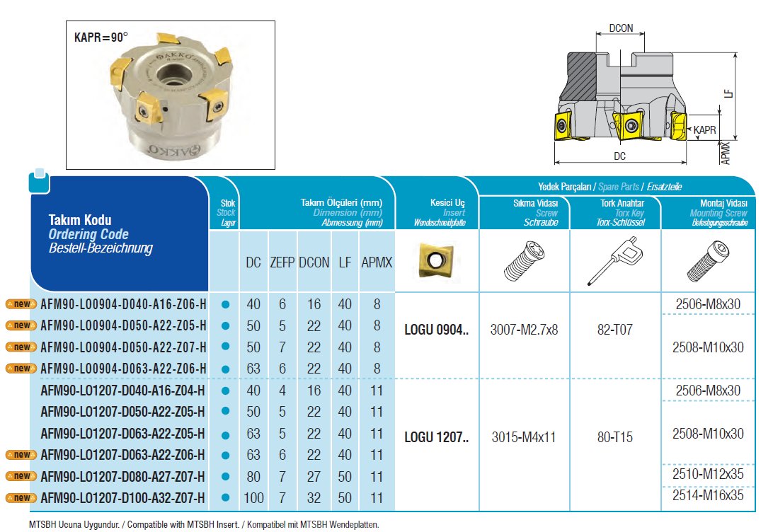 Fréza nástrčná čelní 90° AFM90-LO09-D040-A16-Z06-H