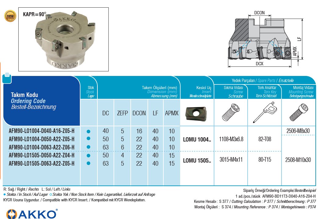 Fréza nástrčná čelní 90° AFM90-LO1505-D050-A22-Z04-H