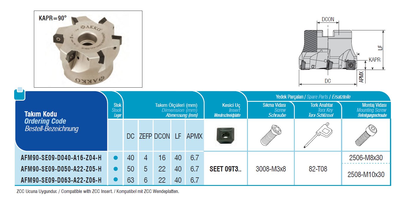Fréza nástrčná čelní 90° AFM90-SE09-D063-A22-Z06-H