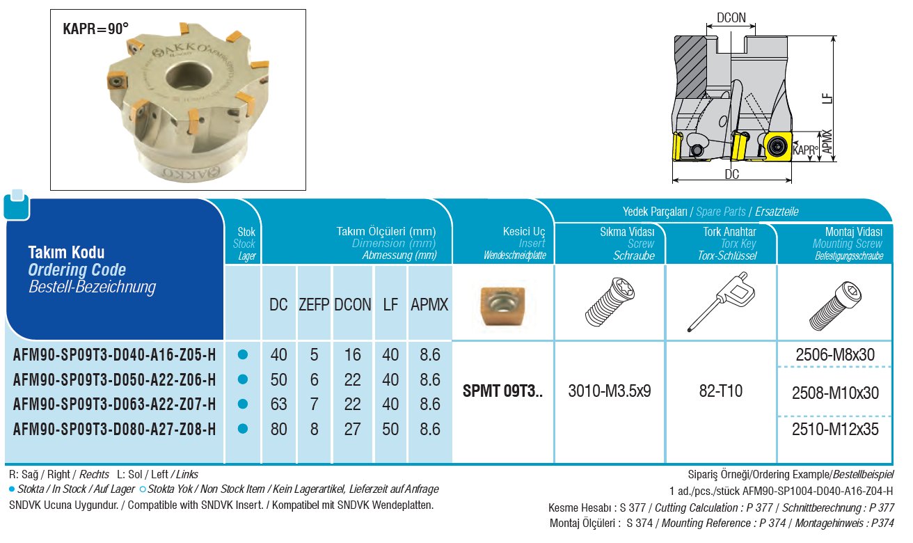Fréza nástrčná čelní 90° AFM90-SP09T3-D063-A22-Z07-H
