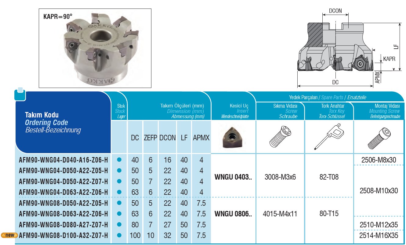 Fréza nástrčná čelní 90° AFM90-WNG04-D063-A22-Z06-H