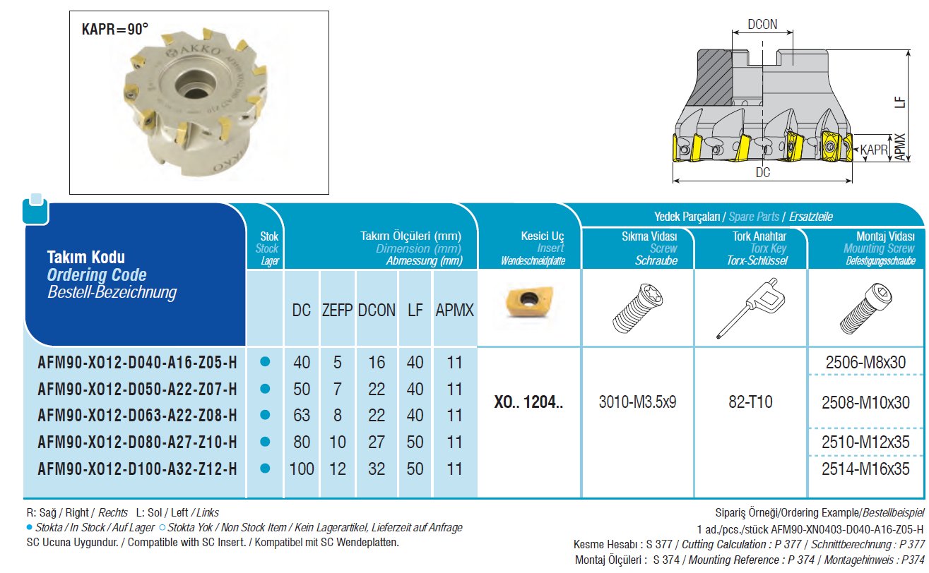Fréza nástrčná čelní 90° AFM90-XO12-D080-A27-Z10-H
