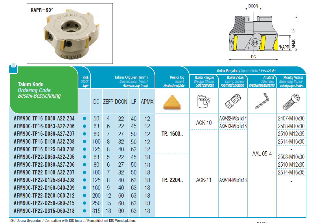 Fréza nástrčná čelní 90° AFM90C-TP22-D125-B40-Z08