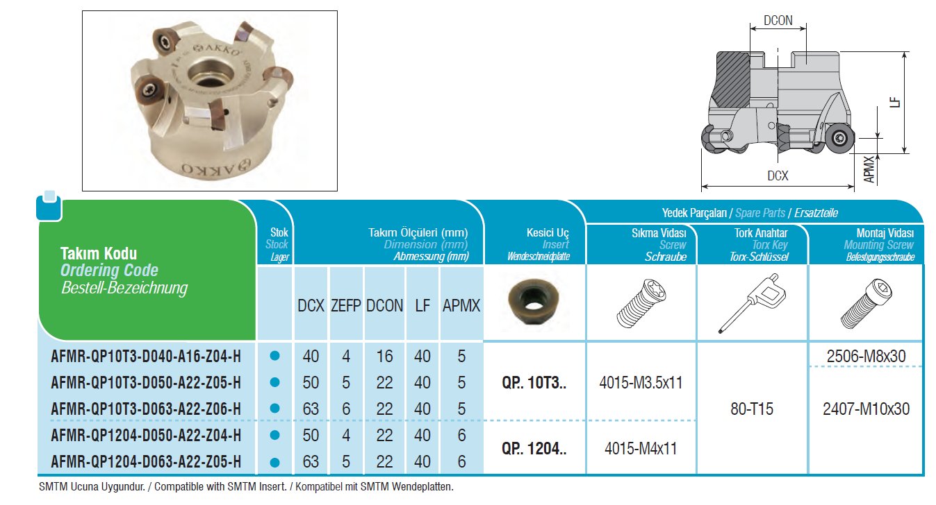 Fréza nástrčná čelní kopírovací AFMR-QP10T3-D050-A22-Z05-H