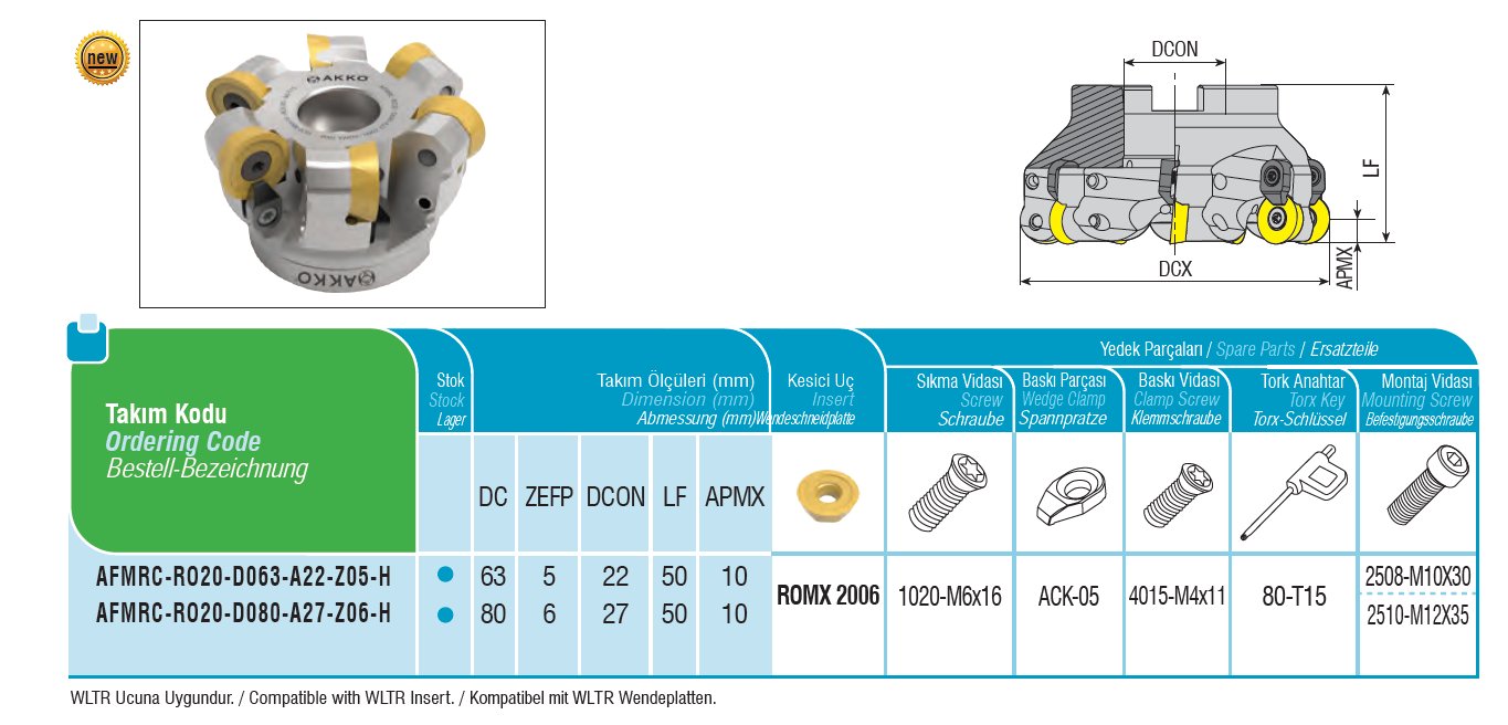 Fréza nastrčná kopírovací AFMRC-RO20-D063-A22-Z05-H