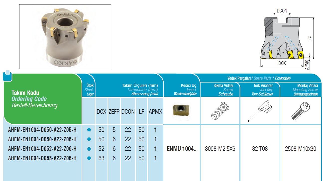 Fréza nástrčná vysokoposuvová AHFM-EN1004-D050-A22-Z06-H