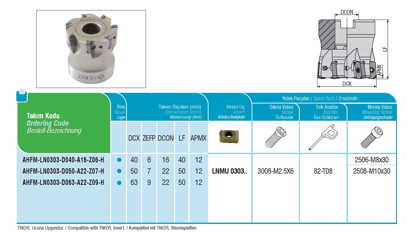 Fréza nástrčná vysokoposuvová AHFM-LN0303-D063-A22-Z09-H