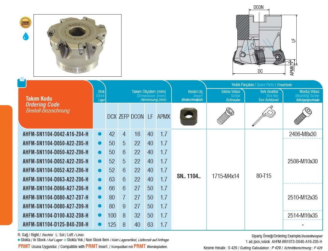 Fréza nástrčná vysokoposuvová AHFM-SN1104-D050-A22-Z05-H