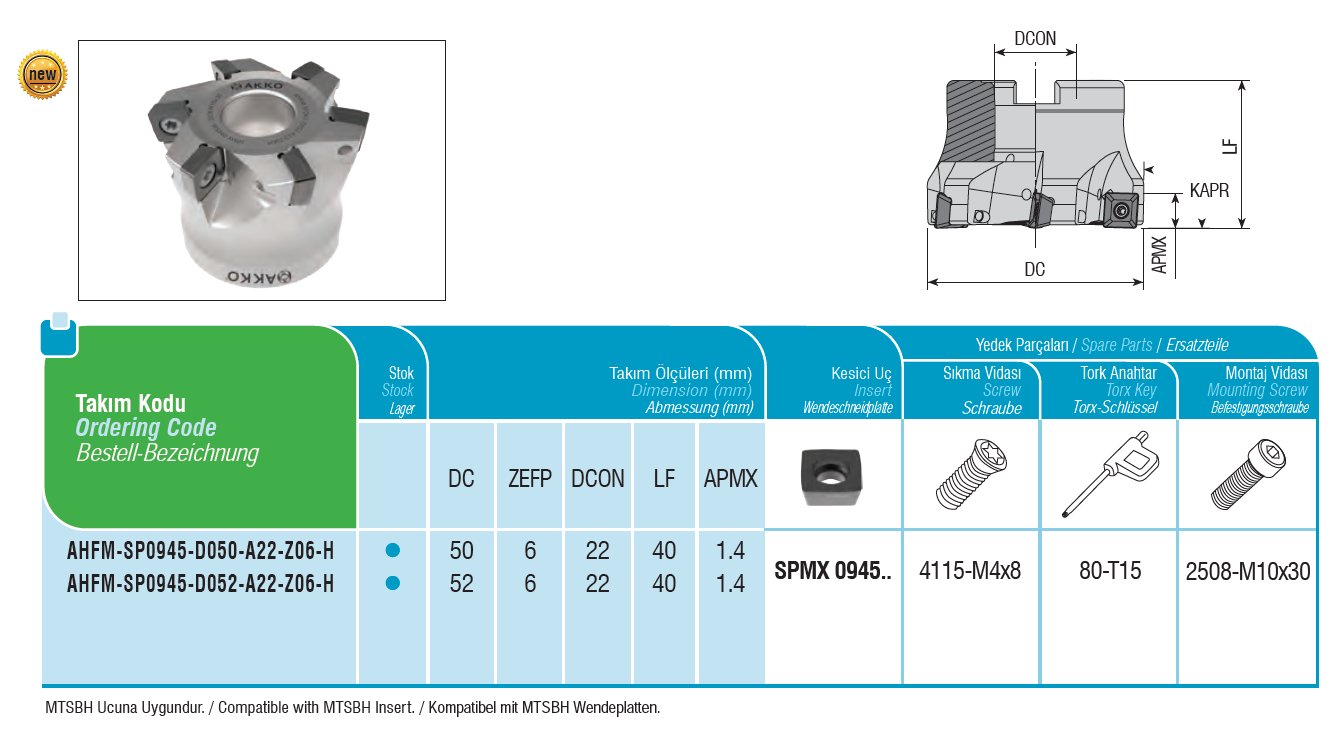Fréza nástrčná vysokoposuvová AHFM-SP0945-D052-A22-Z06-H