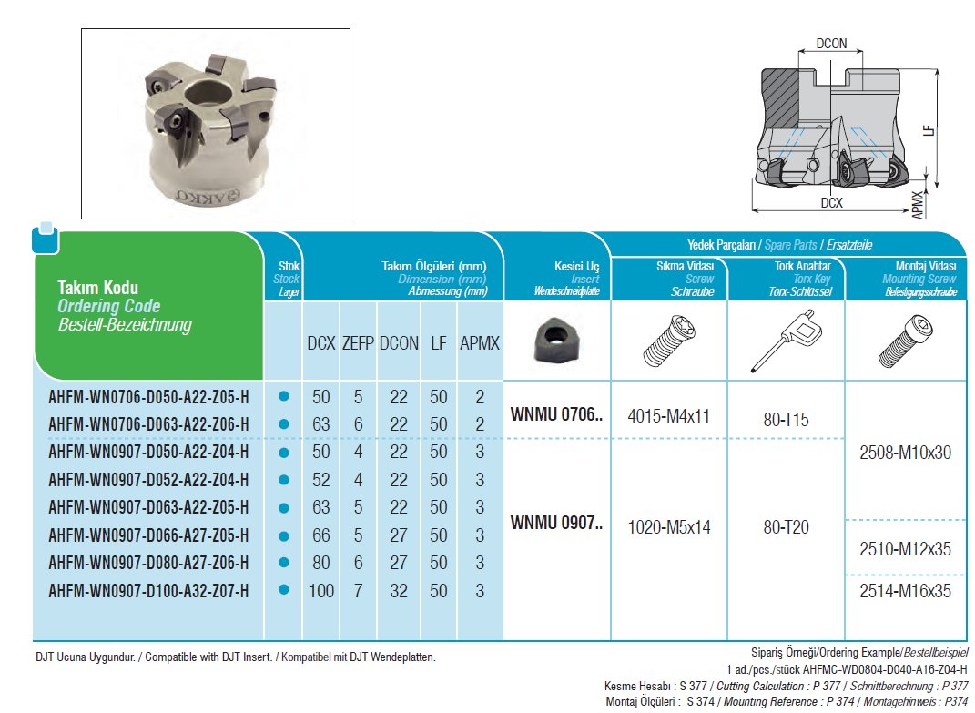 Fréza nástrčná vysokoposuvová AHFM-WN0907-D080-A27-Z06-H