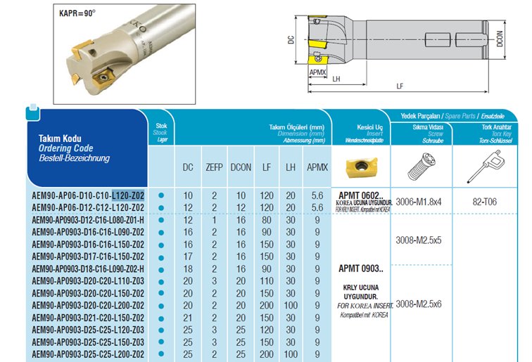 Fréza stopková čelní AEM90-AP0903-D25-C25-L120-Z03