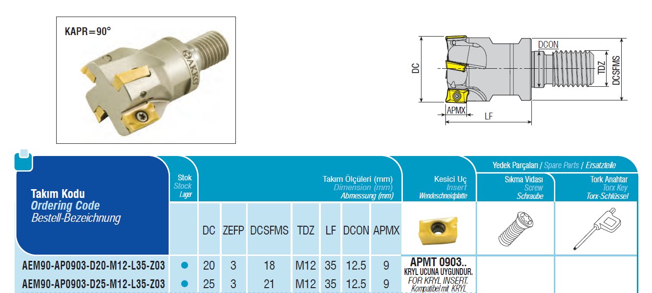 Fréza stopková čelní AEM90-AP0903-D25-M12-L35-Z03