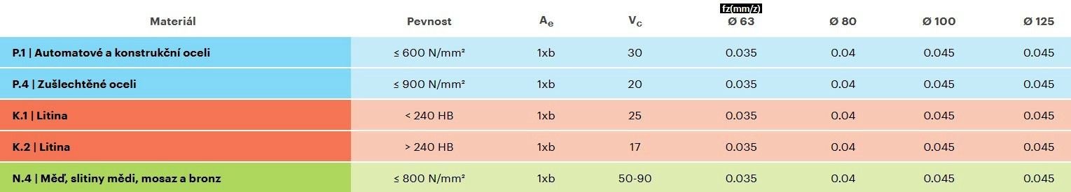 • Rychlořezná ocel středního výkonu, vhodná z hlediska houževnatosti na frézy menších průměrů a frézování materiálů do pevnosti 900 MPa.