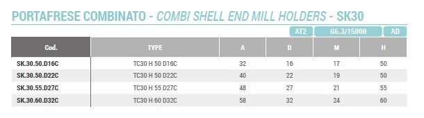 Frézovací trn COMBI SK30 (AD) krátký H55 D27C