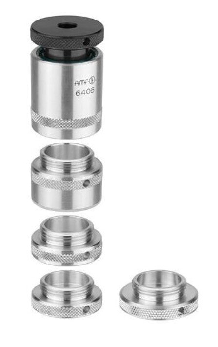 Závit šroubového zvedáku je chráněn před pronikáním třísek stíracím kroužkem. Modulární konstrukce s možností použití hliníkových distančních prvků 6401Z.