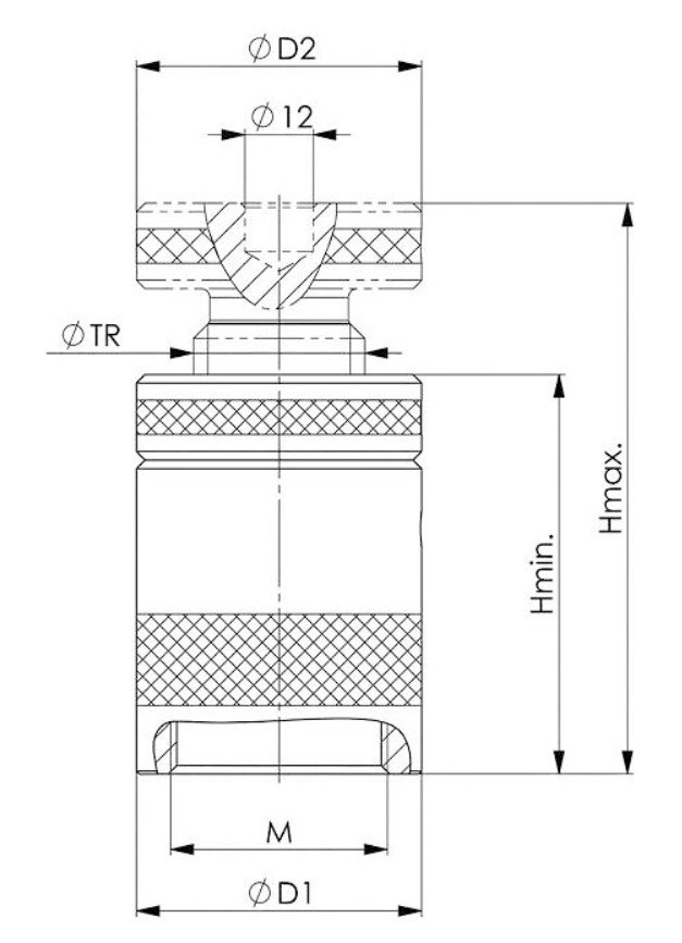 Hliníkový šroubový zvedák s centrovacím otvorem Ø12 mm / M10 je vybaven vřetenem ze zušlechtěné leštěné oceli se samojištěným trapézovým závitem a dorazem. Základna z hliníku s pevností v tahu 400 N/mm² zajišťuje spolehlivou oporu a zároveň chrání povrchy přesných strojních stolů před poškozením. Maximální zatížení je garantováno do výšky 350 mm, při jejím překročení hrozí nebezpečí vzpěru.