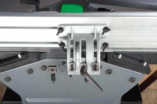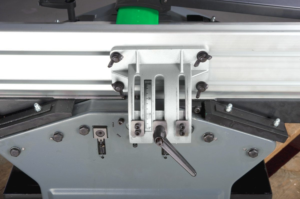 - Šířkově do 254 mm a pod úhlem 0 - 45° nastavitelné podélné vedení obrobku.