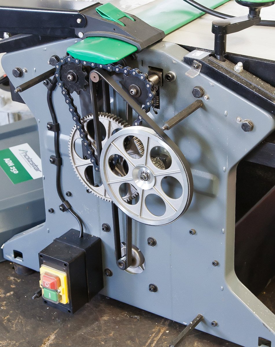 - Precizně opracovaný pracovní stůl s citlivým nastavením tloušťky záběru