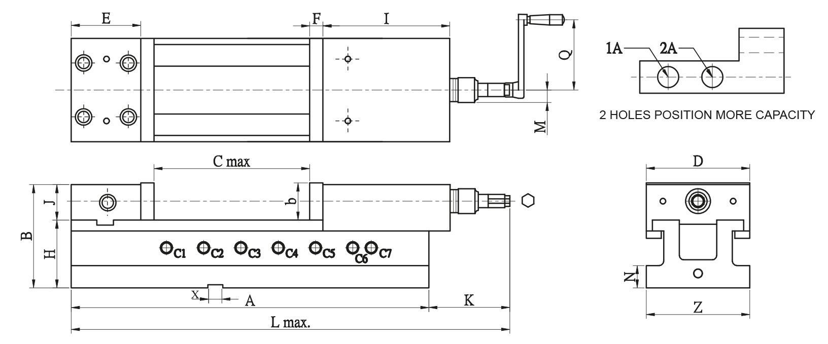 Svěrák VNC-160H s hydraulickým posilovačem. Svěrák je zhotoven z tvárné litiny. Dno svěráku je indukčně kaleno. Využití: obráběcí centra, frézování, vrtání a pod. Max rozevření - 309, šířka - 160, váha 63kg.