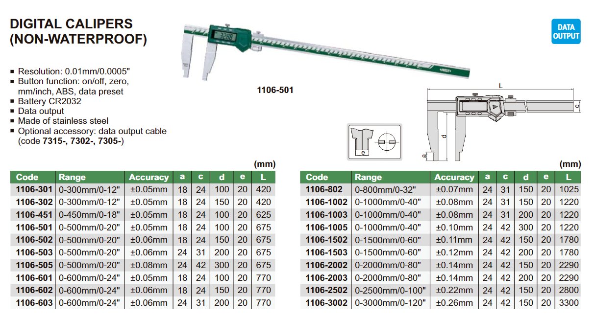 INSIZE 1106-302 dlouhé posuvné měřítko 0-300mm DIGI ( čelisti d150 )