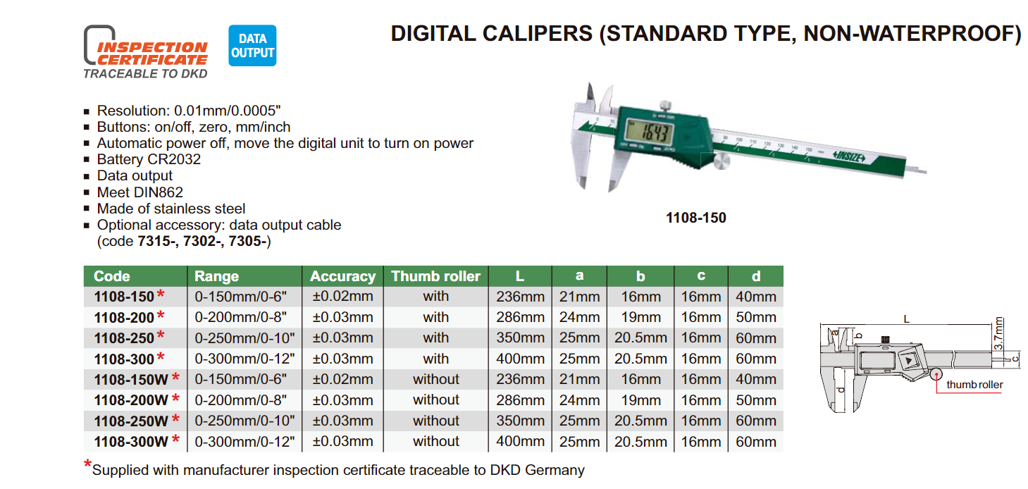 INSIZE 1108-150W digitální posuvné měřítko 0-150mm / 0-6"