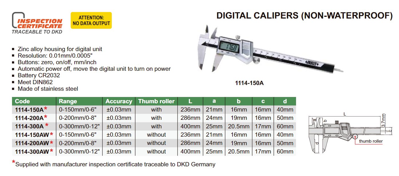 INSIZE 1114-200A digitální posuvné měřítko 0-200mm / 0-8\"