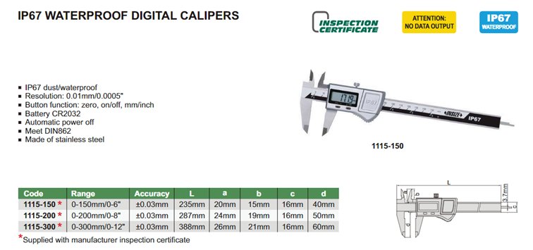 INSIZE 1115-200 digitální posuvné měřítko vodotěsné 0-200mm / 0-8" (IP67)